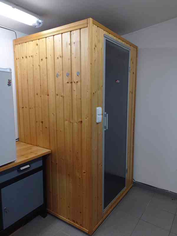 Prodám Infrasaunu vlastní výroby. Robustní celodřevěná konstrukce s odizolovanými stěnami minerální vatou a hliníkovou odrazovou folií. Velmi málo využívaná. Suna je osazena čtyřmi kvalitními infrazářiči Dr.Fischer-Vitae 350W vyzařující infračervené spektrum blízké slunečnímu svitu v rozsahu 1,4 až 10 mikrometrů což je zásadní pro maximální přínos a prohřátí těla do větší hloubky než u levných produktů na trhu. Osvětlení zajištuje modrý led pásek u stropní kostrukce. Ovládání vypínači ( aut. regulace pro infrasauny nedává smysl) Vnější rozměry v = 206cm / hl = 112cm / š = 116cm / Původní výrobní náklady 40tis. jen za materiál. Výborná při bolestech hlavy, svalů apod. Náběh a pocit tepla je okamžitý, není třeba předehřívat.