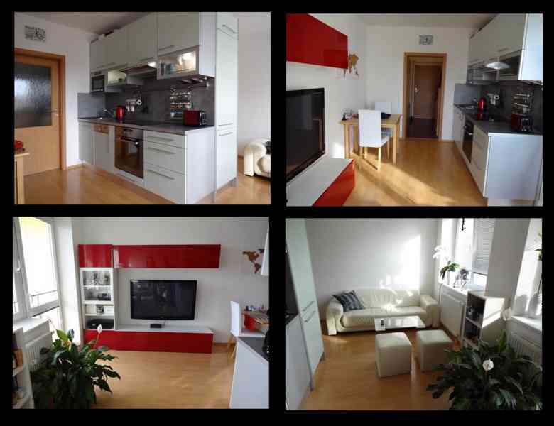 OBÝVACÍ POKOJ+KK 30,4m2 s plov. podlahou a kuchyňským koutem s vestavěn. spotřebiči: myčka, el. sporák, trouba, mikrovlnná trouba, velká lednice s mrazákem, nerez digestoř. V pronájmu je k dispozici nábytek: rozkládací jídelní stůl, 2 židle, obývací skříňková sestava BEZ TV! Kožená rozkládací sedací souprava, konferenční skleněný stolek, dvě kožené sedací kostky k soupravě, za rohem postel 140x200 s úložným prostorem. Přípojky na TV,SAT,rádio,tel,v domě je dostupný vysoko rychlostní internet od UPC a O2. Velká okna (se žaluziemi) a výstupem na BALKÓN 3,87m