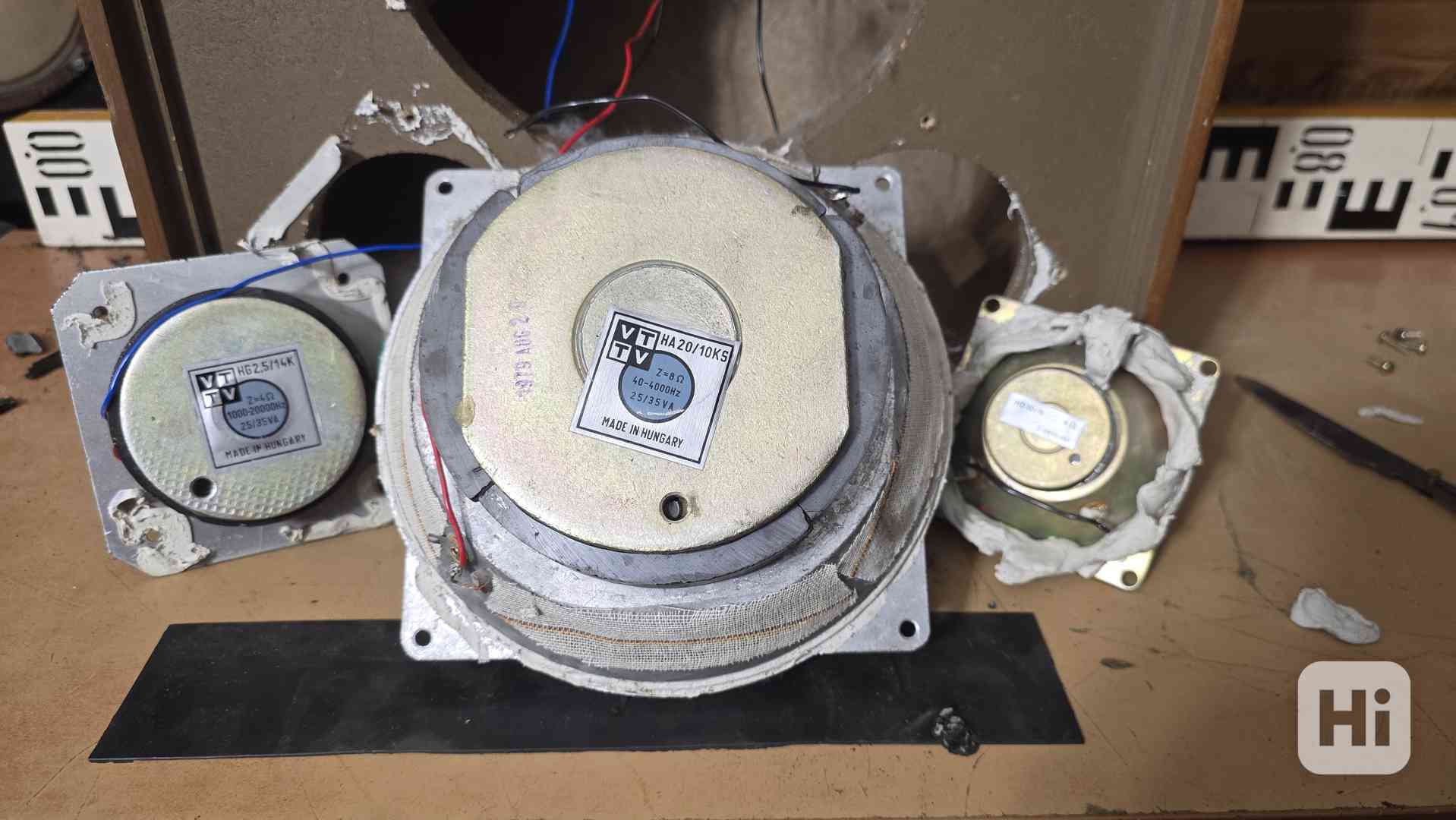 Prodám reproduktory - originální osazení pro reprosoustavy VIDEOTON SUPERMAX. Basové HA 20/10 KS - tyto mají totálně vysypané závěsy, ale cívky jsou v pořádku - tj. "hrají", ale v tomto stavu samozřejmě použitelné nejsou - nutné nové závěsy. Cena 999,- Kč za pár (prodej pouze v páru, skladem 2 páry), VIDEOTON HG 2,5/14 K - černé kalotové - cena 999,- Kč za pár (prodej pouze v páru, skladem 2 páry), VIDEOTON HD 10/8 - papírové membrány - prodej i jednotlivě, cena 250,- Kč/ks. K dispozici i ozvučnice, kromě pár povrchových škrábanců jsou na svůj věk v dost unikátně zachovalém stavu, včetně rámečků se síťkami a odznaky - cena 999,- Kč za pár - ozvučnice pouze osobní převzetí Praha 9, parkování přímo před dveřmi. Reproduktory lze poslat poštou nebo Zásilkovnou. Vzhled, funkčnost a další informace viz komentované video zde (odkaz prosím zkopírujte do prohlížeče): https://www.youtube.com/watch?v=U4Mml2WnoZg