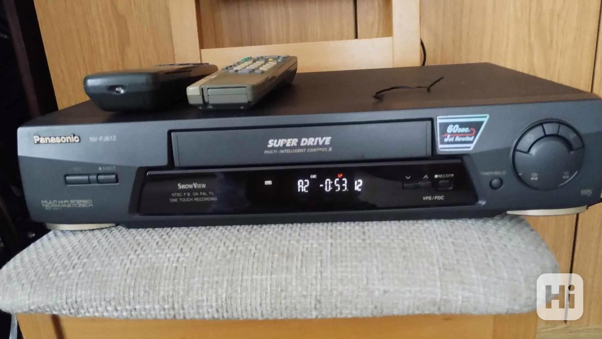 Prodám málo používaný 6-Ti hlavý Videorekordér Panasonic NV-FJ 612 . Video má 2x scart a 2x sinch konektor na připojení k audio sestavě. Video je po důchodcích, kteří ho kdysi používali více méně jako tuner u starší televizi a jako přehrávač. Nahrávání bylo použito max 30x. Video je ještě Německý výrobek, který má hliníkové šasy a tvrzené hlavy. Součástí dálkový ovladač na kterém bohužel nefungují některá tlačítka, proto přidávám ovladač od televize Panasonic s kterým dájí ovládat i základní funkce včetně nahrávání vidorekordéru a dvd rekordéru. Přd prodejem byl přístroj vyzkoušen a vše funguje ok.